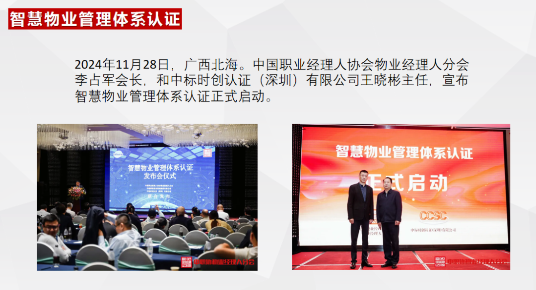 在数字化浪潮席卷各行各业的时代背景下,物业领域也迈向智慧化转型之路。智慧物业建设开展的如火如荼,众多物业企业纷纷投入大量资源,通过先进技术和创新举措来提升服务品质、优化管理效率。然而,我们必须清醒地认识到,智慧物业不只是停留在实际的行动层面,还需要有第三方认证来加以证明,二者相辅相成,共同构筑智慧物业发展格局。
