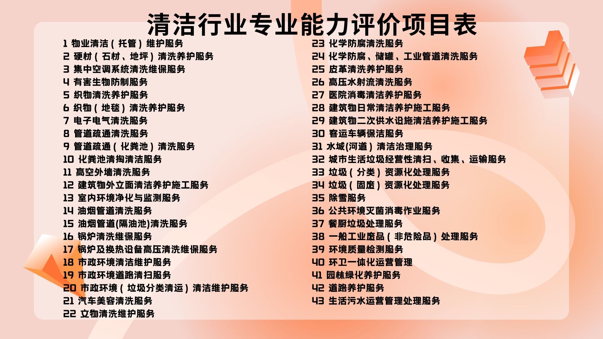 目前, CCIS1000清洁环卫环境行业专业能力评价细分为43个专项 ,全面覆盖整个清洁环卫环境行业。