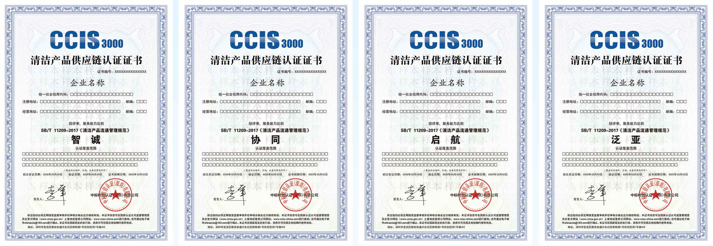 CCIS3000清洁产品供应链认证是CCIS清洁行业体系系列认证之一,依据商务部SB/T 11209-2017《清洁产品流通管理规范》,经由国家认监委批准的具有专业能力的第三方认证机构对企业的供应链管理能力进行评价,并根据认证结果颁发证书,此证书为清洁环卫环境领域专属的供应链等级评价证书。