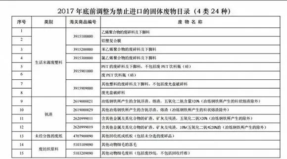 中国在送交WTO中的文件表示,一般可回收利用的固体垃圾中,常掺杂有为数不少的高污染垃圾与危险性废物,污染中国环境,为了保护环境与人民的健康,中国要调整垃圾进口法规,拒收高污染的固体废弃物,禁令将于2017年年底生效。