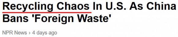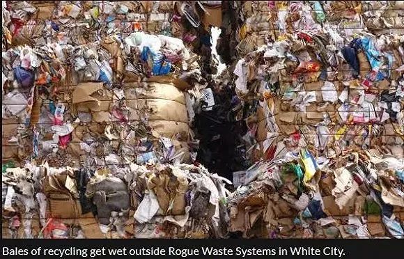 美国,Oregon州的一家垃圾回收站,新闻标题用“chaos(混乱)”来形容因为中国的禁令,美国目前的垃圾回收状况。