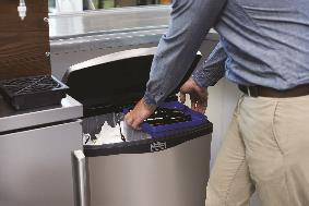 其实一开始就实现有效清晰的垃圾分类,可有助于减少整个回收过程中可能耗费的时间和精力。以RCP推出的Slim Jim™踏板式垃圾桶为例,它能够满足各个区域内的不同需求,并可根据实际使用情况选择硬质双内筒,提供分类回收管理方法,通过颜色标识不同类别的垃圾,简化了垃圾分类过程。企业践行可持续发展不仅是通过所提供的产品和服务,也体现在企业内部的绿色运营理念上。选择精巧的Slim Jim™踏板式垃圾桶虽是办公室设施的小小改变,但能成为企业迈向节能环保文化的第一步。