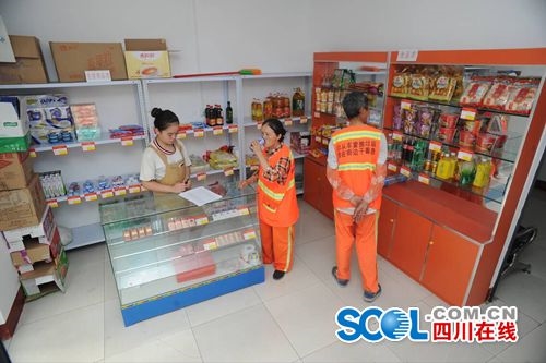 四川在线消息(四川日报记者 肖雨杨)6月20日上午,成都市武侯区机投桥街道白佛社区的“环卫之家爱心超市”里,环卫工人任荣芬正在购买生活用品。
