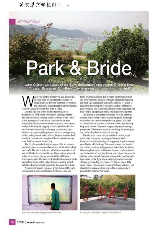 世界固废协会副会长JANE GILBERT (珍妮杰伯特)参观了中国第一个循环经济生态公园,一个令人意想不到的地方,是你在这里甚至可以举办婚礼、拍婚纱。