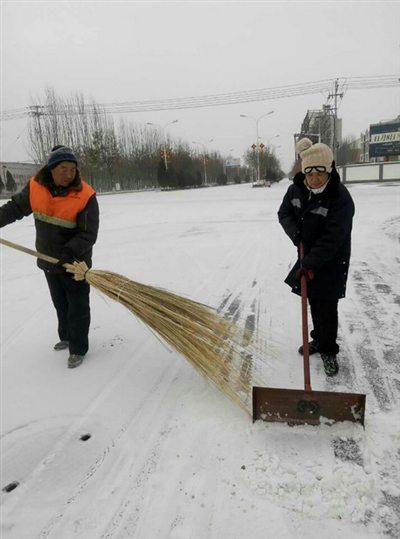 2月6日晚上,临河迎来了今年以来的第一场雪。纷纷扬扬的雪花洒落在市区的大街小巷,银装素裹的临河城显得格外美丽。大雪虽然净化了空气,但也给市民生活、出行带来了诸多不便。7日早上6点半,雪仍然下着,临河城区白茫茫一片。由于夜间温度低,刚接触路面的雪花在路上结成了一层薄冰雪,湿滑泥泞。此时,大多数人还在温暖的被窝里,然而城市的环卫工人们却不畏严寒,早早带着扫帚、簸箕、铁锹等工具陆续上路,开始了一天的工作……