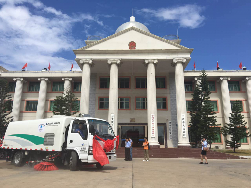 据了解,此次捐赠的三台设备将主要在三沙市政府驻地永兴岛服务。永兴岛是西沙群岛领土面积最大的岛屿,目前岛上有5条主要街道和1条环岛公路,据介绍,中联重科捐赠的ZLJ5070TXSQLE4洗扫车是集扫路车和高压清洗车功能于一体的高效环卫车,具有路面清扫、路面清洗、路面洗扫、路沿和路沿石立面刷洗、喷雾降尘、低压冲洗等多种功能,能够有效满足三沙市道路清扫的各类要求。