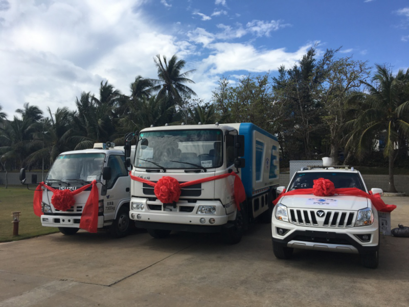 目前,三沙市基础设施建设正在加快推进,工地扬尘等污染的监测与防治十分迫切,但单靠人力很难实现有效覆盖,因此中联重科特别捐赠了一辆ZLJ5020XJEE4环境监测车,用于岛上相关环境的监测。车辆行驶时,通过云台摄像、拍照,硬盘存储、显示器显示等系列功能,可实现对岛上环境卫生、路面污染情况、突发紧急情况等进行监测。此外,车辆货箱内安装有喷药系统,可用于岛上地下管道的消毒,灭蚊及园林打药等。