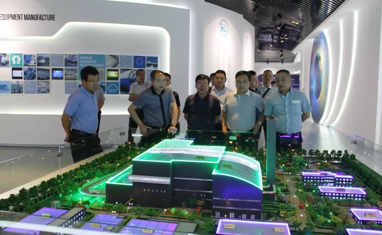 在启迪桑德董事长文一波的引导下,湘潭市领导考察团先后参观了多处业务展厅,了解了包含固废处置与利用、互联网环卫、再生资源O2O、水务综合治理在内的“桑德云”体系,认识了将万物互联融为一网的环保云生态。