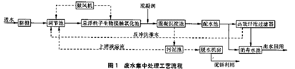 悬浮粒子生物接触氧化池出水经管道混合器与混凝剂(碱式氯化铝或聚铁)的混凝作用后,矾花形成快、沉淀速度快、出水浊度低、可以减小后续过滤单元的负荷。