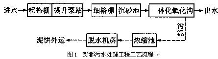 新都污水处理示范工程设计规模为1万m3/d,该工艺是在国家"八五"成果基础上考虑到脱氮、除磷而设计的。该工程工艺流程短、构筑物及设备少、建造快(仅用5个月时间便建成)、工程质量优。