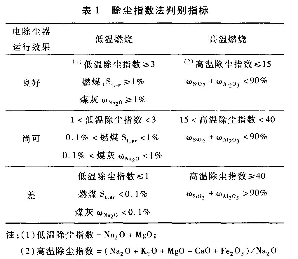 当然,煤种的改变也影响电除尘器的除尘效率。采用国际通用的煤灰特性判别方法—— 除尘指数法,