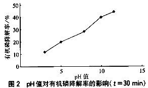考虑到在上述试验条件下的有机磷降解率尚未达到较高的处理效果,因而向反应体系中加入H2O2,试验结果见图3。