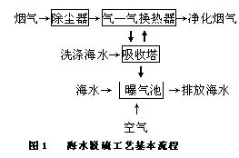 天然海水中含有大量的可溶盐,其主要成分是氯化物和硫酸盐,也含有一定量的可溶性碳酸盐。海水通常呈碱性,自然碱度为1.2-2.5mmol/L。这使得海水具有天然的酸碱缓冲能力及吸收SO2能力。利用海水这种特性洗涤并吸收烟气中的SO2,达到烟气净化之目的。