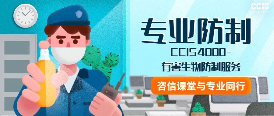 和所有的服务一样,有害生物防制服务的优质水平取决于优秀技术服务的水平。CCIS4000是清洁行业人员能力评价的权威体系,咨信课堂“CCIS4000-有害生物防制服务”项目经理/专业技能人员证书课程已经上线!线上报名,即刻学习持证上岗,全国通用!