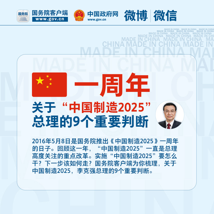 一周年 | 关于“中国制造2025”,总理的9个重要判断