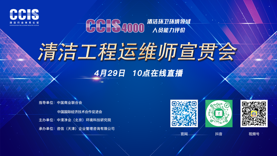 4月29日上午10点整,“CCIS4000人员能力评价暨清洁工程运维师宣贯会”线上开播!今天,小编继续为大家做宣贯会的精彩预告,本次宣贯会将正式公布:首期“清洁工程运维师”培训考评工作的相关事宜。