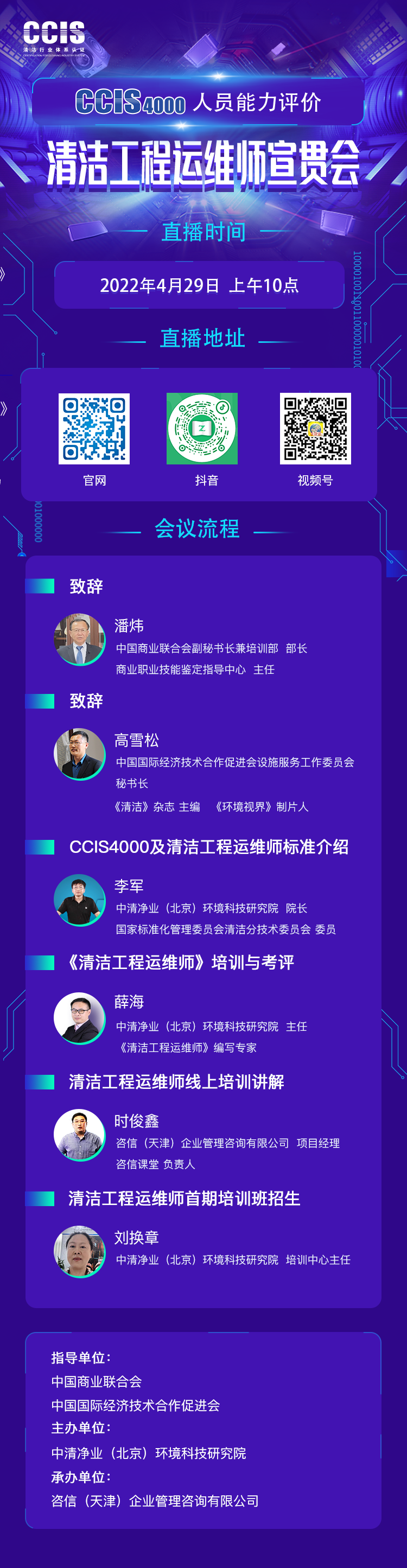 宣贯会直播地址及会议流程如下: