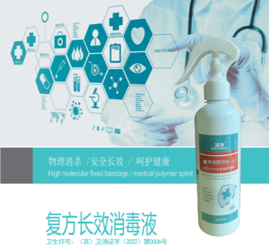冷净牌复方长效消毒液,主要成分为多种复合双链季铵盐,聚六亚甲基双胍,柏木纯露等。产品采用多种有效灭菌成分,使用了专利技术,具有权威机构检验报告,且无毒无害无腐蚀、非易燃易爆,杀菌力达到99.999%,长效作用6小时以上。可用于环境物体表面、地面、墙壁、物体表面、衣服、被褥等纺织品、手消毒等。