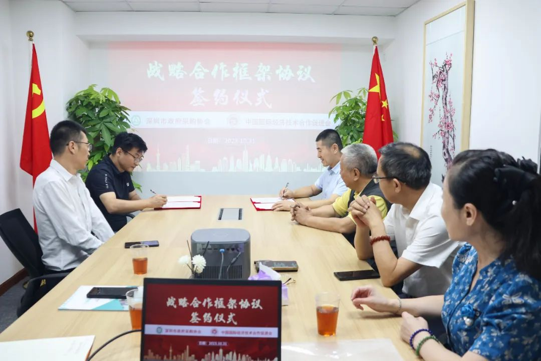 10月31日,在双方共同见证下进行了签约仪式,双方代表签署战略合作框架协议,李军会长表示双方共同推动组建“标准与认证工作办公室”,全面承担标准化工作,依据标准为会员单位提供认证咨询服务,并开展对城市服务内审员培训。丰强会长表示希望以此次战略合作签约为契机,积极推动深圳市政府采购协会与中国国际经济技术合作促进会的深度合作、创新合作、高质量合作,打造政府采购标准典范,为服务政府采购领域高质量发展做出贡献。