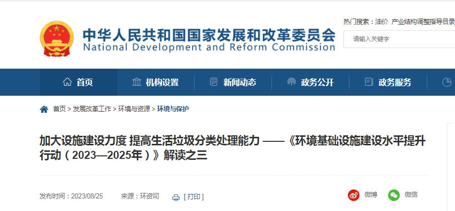 生活垃圾分类和处理设施是环境基础设施的重要组成部分,是推动实现生活垃圾无害化、减量化、资源化的重要保障。近日,国家发展改革委、生态环境部、住房城乡建设部等部门印发《环境基础设施建设水平提升行动(2023—2025年)》(发改环资〔2023〕1046号,以下简称《行动》),对加快生活垃圾分类和处理设施建设作出明确部署,助力改善城乡人居环境。